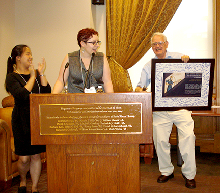 Russell Peck receives a signed poster for his labors to make the congress such a success. |