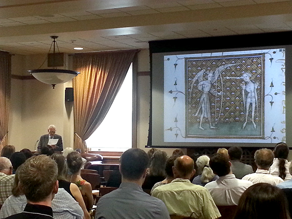 Russell Peck delivers the first plenary lecture of the congress: The Materiality of Cognition in the Staging and Regulating of Emotion in Confessio Amantis. |